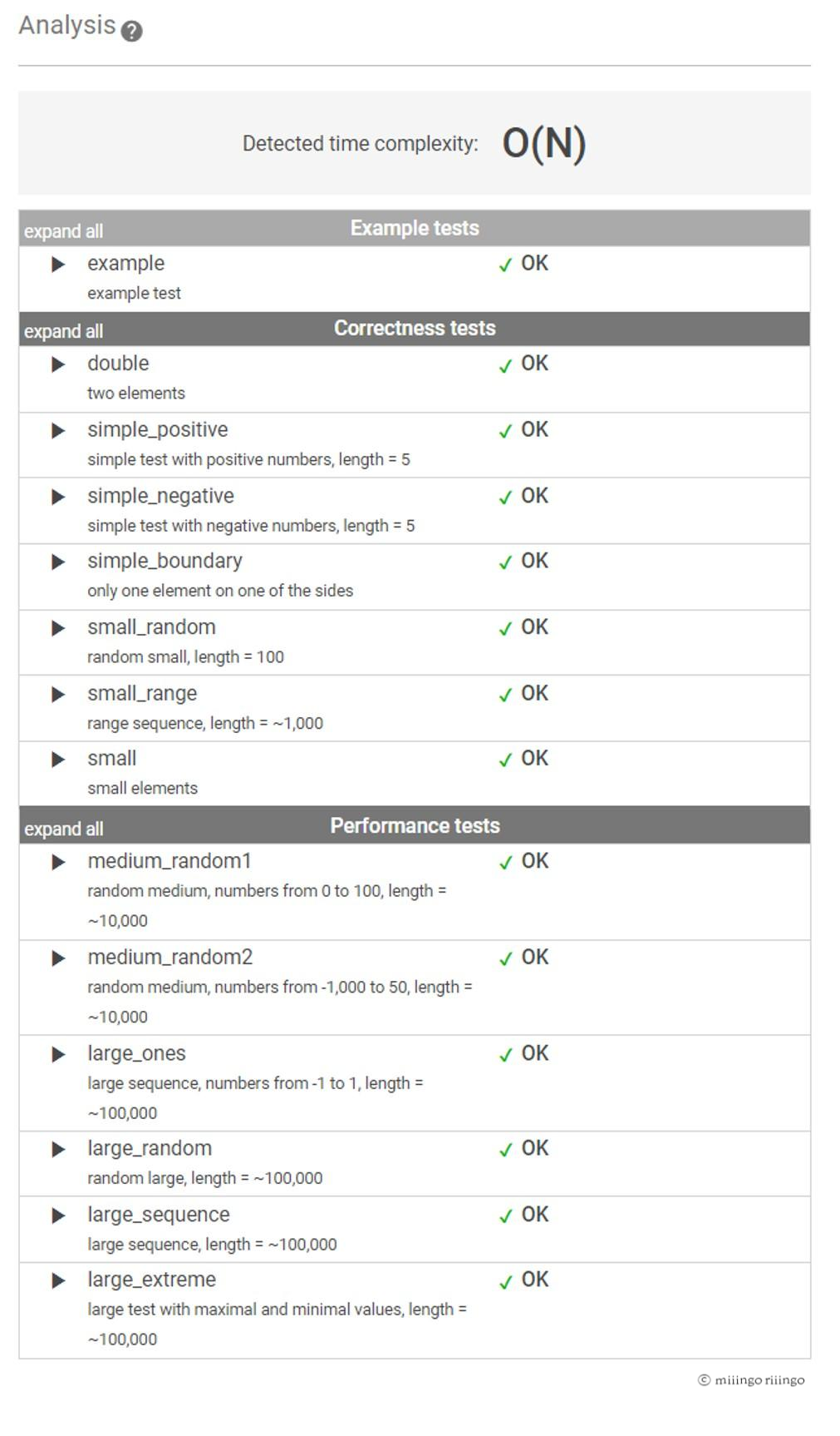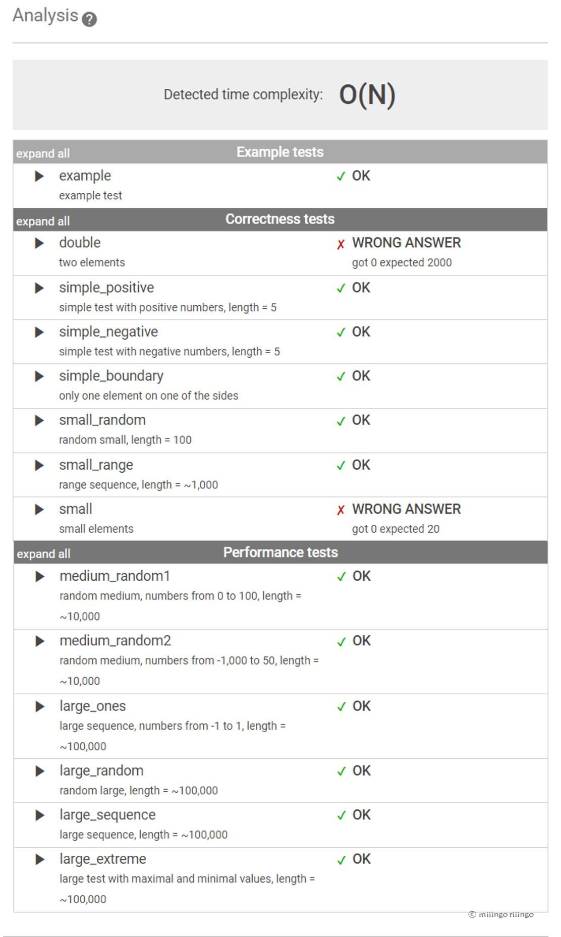 예를 들어, 입력 [-1000, 1000]에 대해 솔루션이 틀린 답을 반환했습니다 (결과: 0, 예상: 2000).