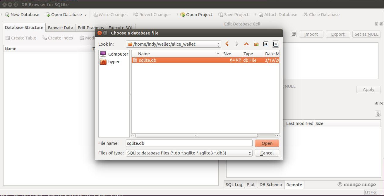 'Open Database'를 클릭해 보고싶은 sqlite.db 파일을 Open합니다.