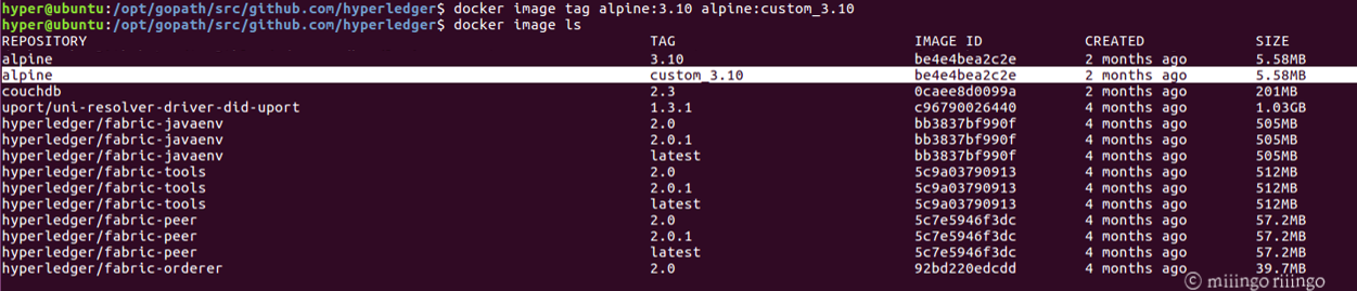 docker image tag alpine:3.10 alpine:custom_3.10