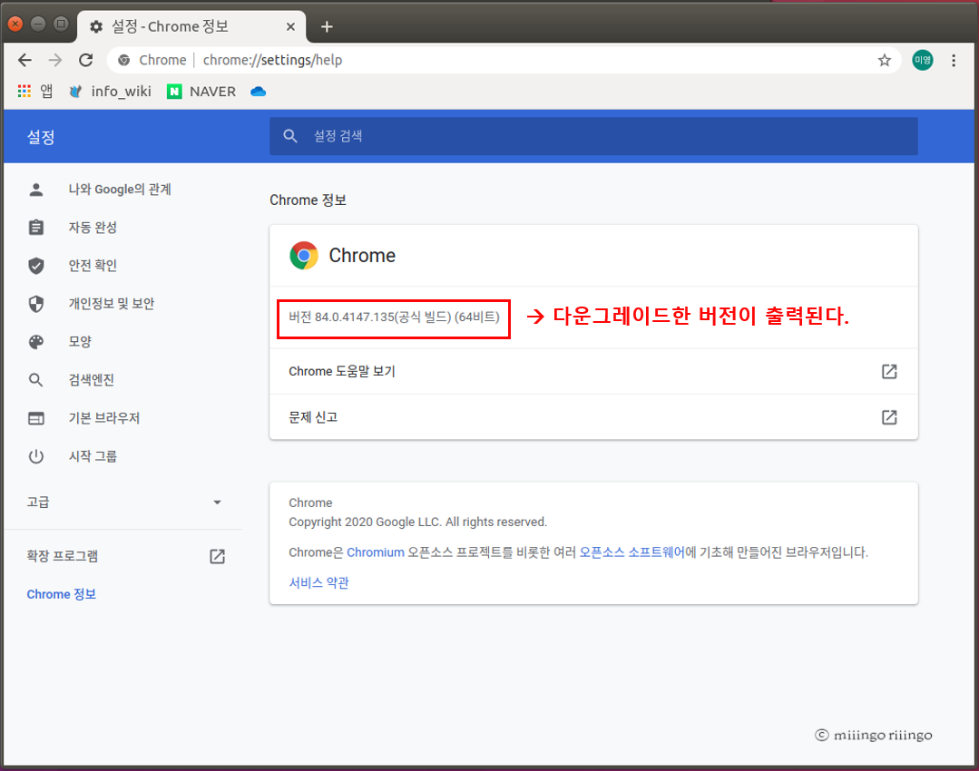 나는 Google Chrome Linux Version 64-bit deb for Ubuntu/Debian에서 84.0.4147.135 버전을 다운로드 했다.